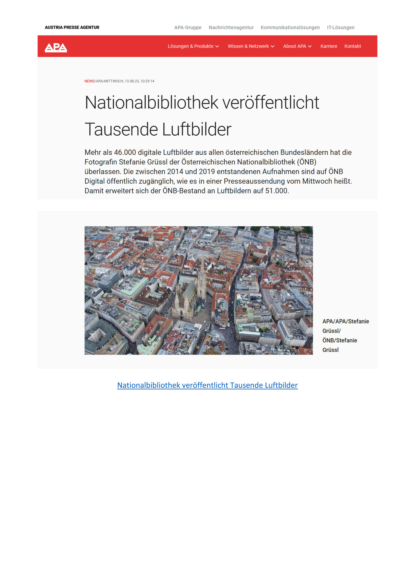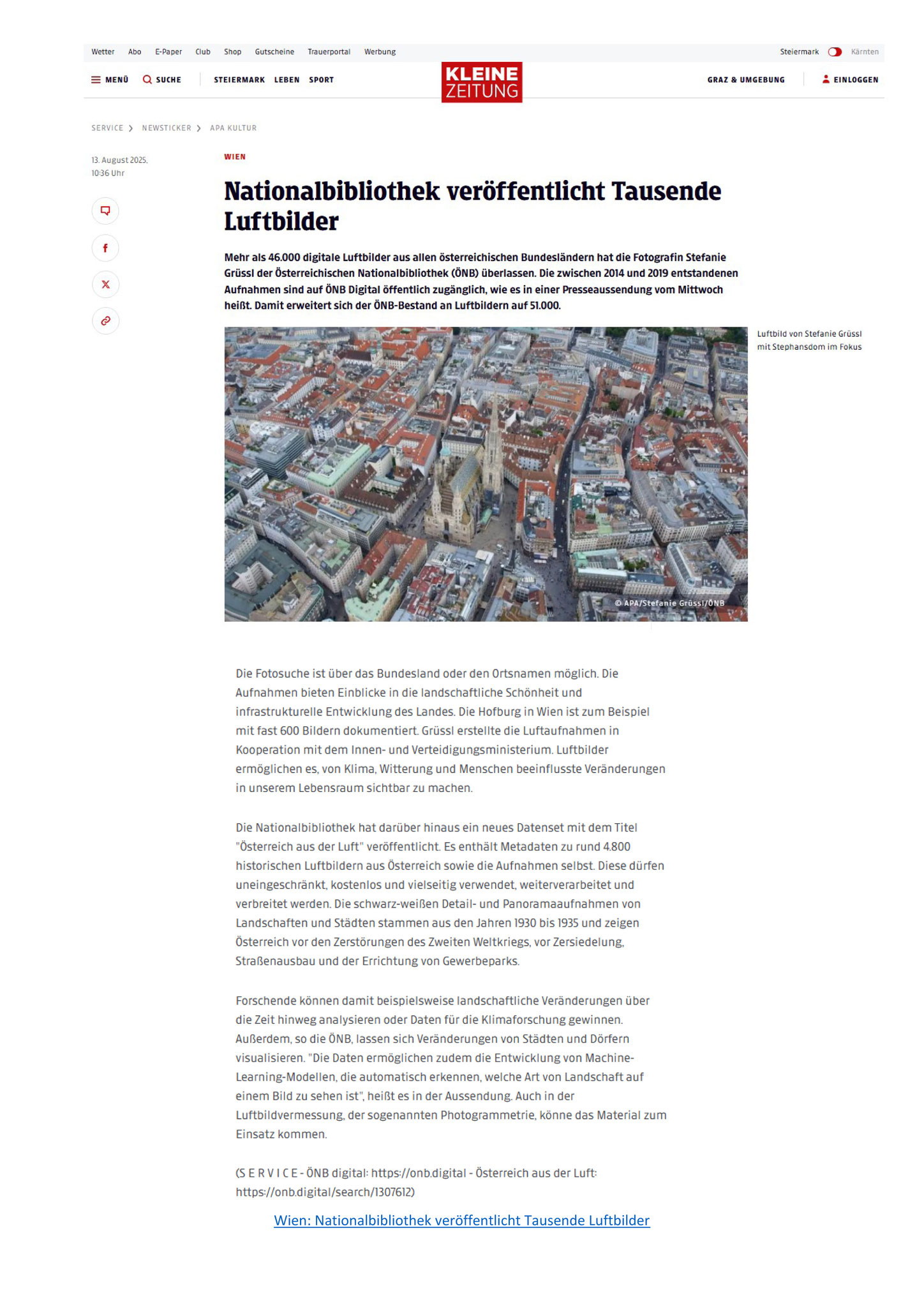 Kleine Zeitung: Wien: Nationalbibliothek veröffentlicht Tausende Luftbilder